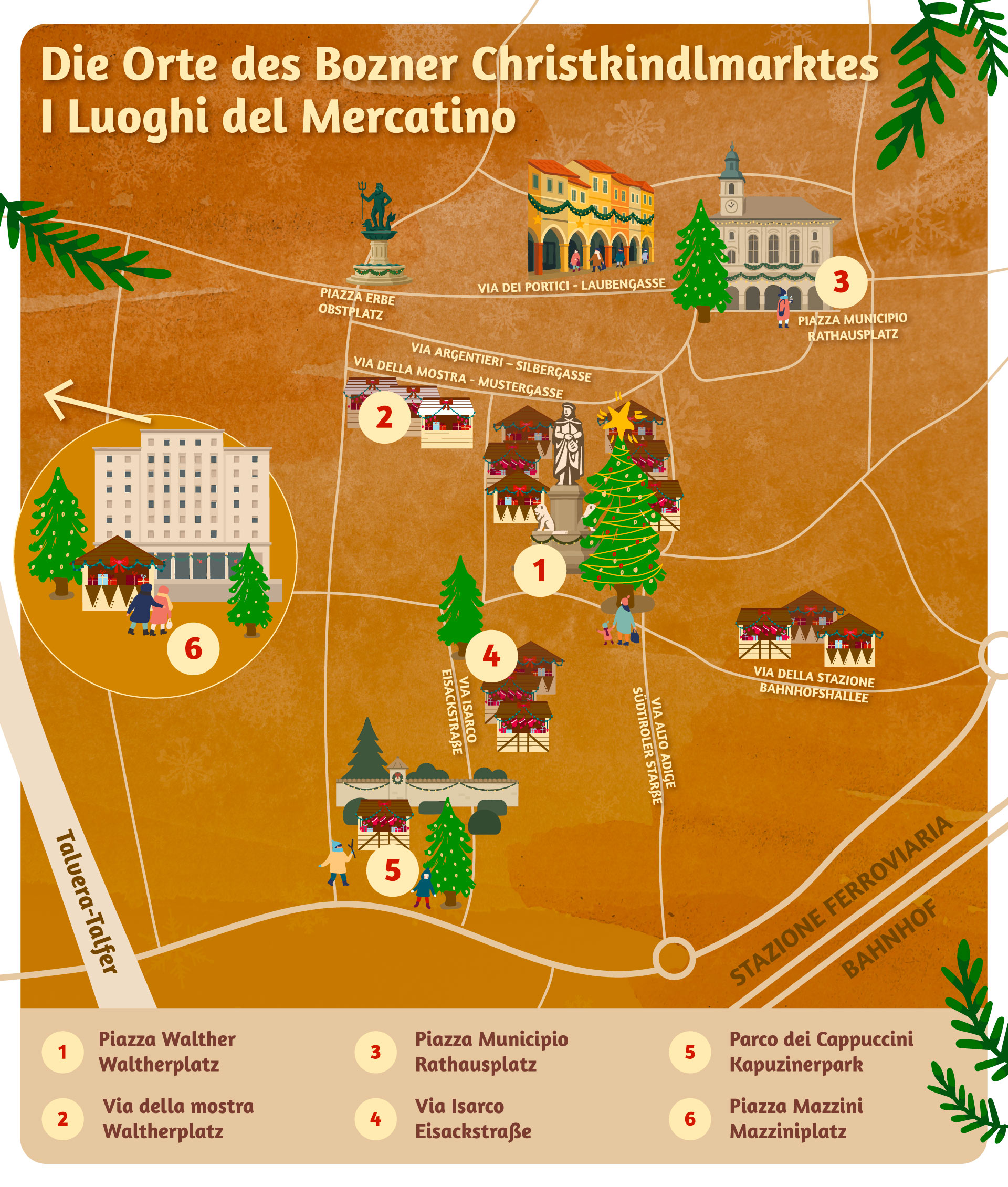Per questa edizione troverete le casette degli artigiani lungo via Isarco, partendo dal Duomo fino al Parco dei Cappuccini.